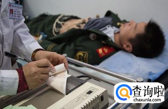 待受检者躺在床上后,将心电图机上的10个电极放置到四肢及胸壁相应位置。