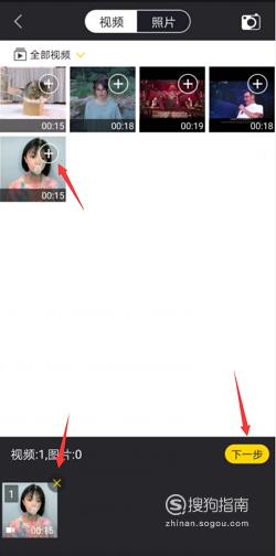 点击“+”导入作为背景的视频,点击“×”导出添加错误的视频。视频导入成功后点击“下一步”。