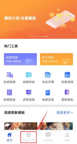 首先打开“清爽视频编辑器”,在首页下方找到“视频工具”点击进入视频工具页面。