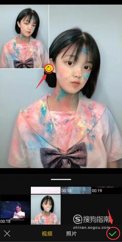 选择需要添加的视频或照片,点击即可选择完成,选择好后可以按住视频移动到需要添加的位置,按住黄色图标可以控制视频大小,设置完成后点击“√”。