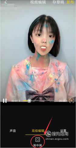 视频编辑页面中,有声音、高级设置、设置三种操作,制作画中画需要点击高级编辑中的“画中画”功能。