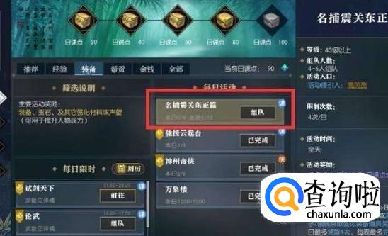进入逆水寒游戏后,点击键盘上的J,调出任务界面,选择一个需要组队的任务。