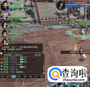 接着就进入队伍信息栏,点击右上角的“喊话”,再点击“组队频道”。