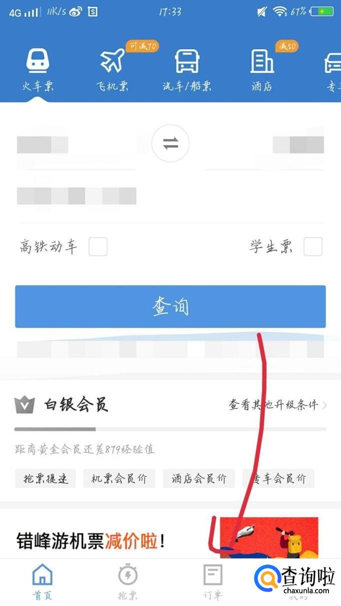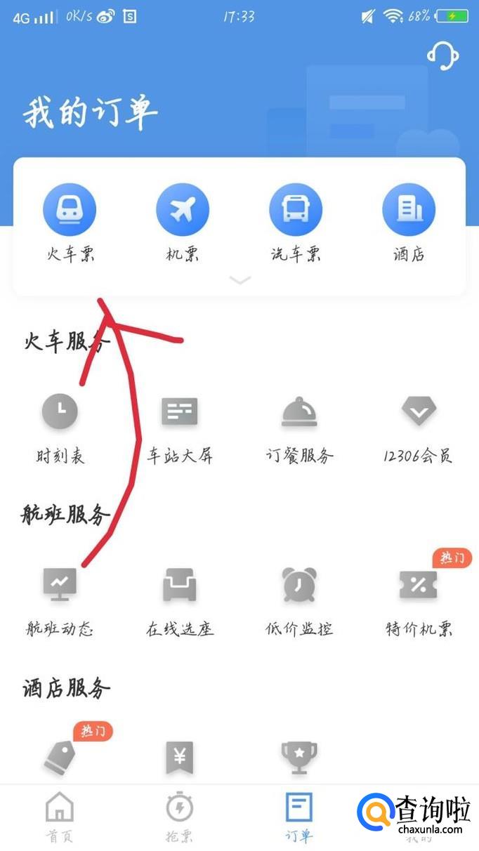 点击“火车票”选项,如图1箭头所示。你会看到出现一个新的界面,如图2所示。