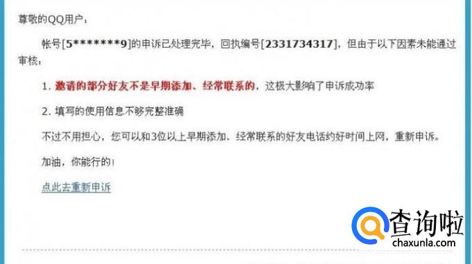 申诉提交后,将本次回执编号告诉好友,请好友点击收到的QQ消息或者邮件,进入辅助申诉页面,填写本次申诉的回执编号即可。