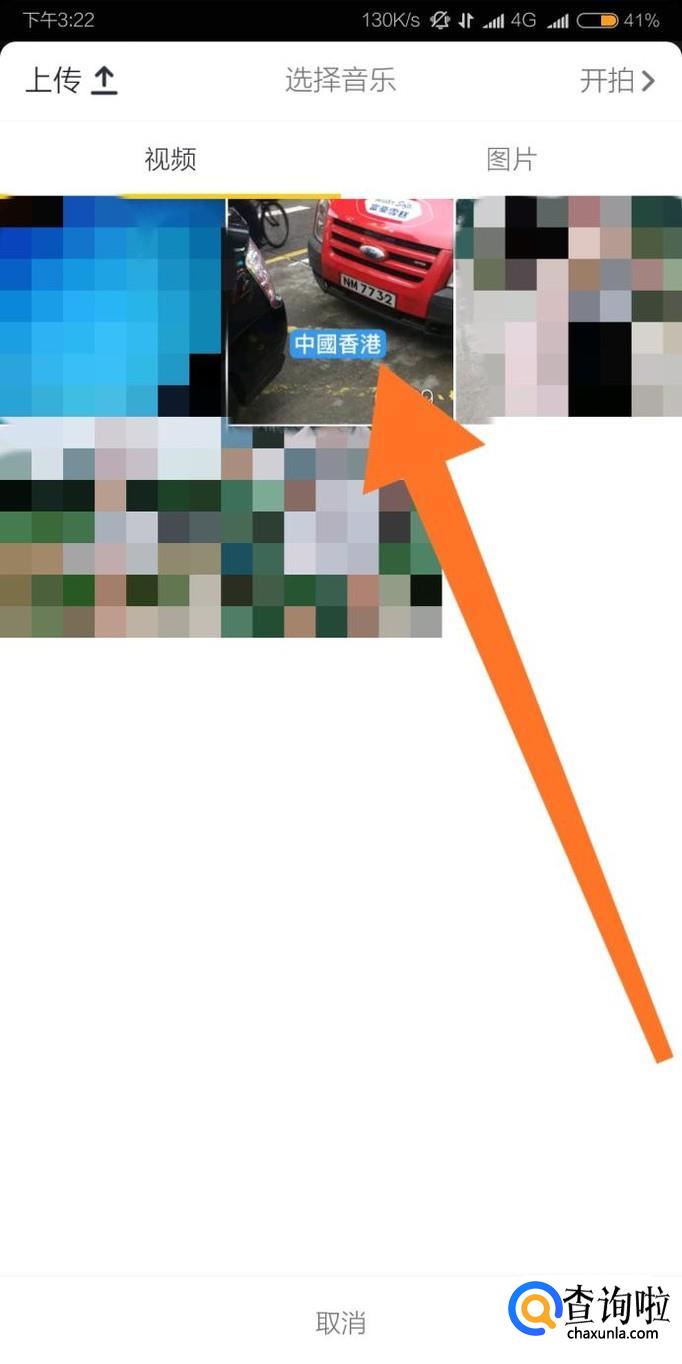然后点击屏幕左上角的“上传”,选择要上传的本地视频。