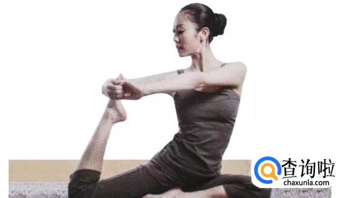 第三步:将头转向左侧,吸气,将双手相扣于脑后,同时头向上抬,伸展胸腔;臀部向后下压,保持此姿势三次呼吸的时间。呼气的同时放下右脚,恢复初始的姿势。