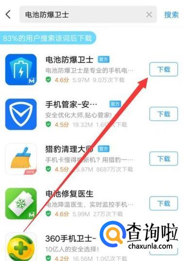 进入之后,搜索“电池防爆卫士”将其下载安装到手机上面,如图所示。