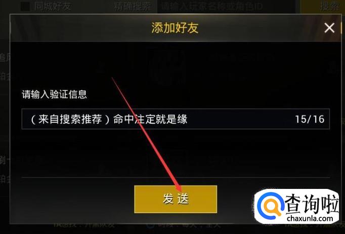 进入之后输入你跟他说的话,然后点击确定,对方就受到了你的好友请求。