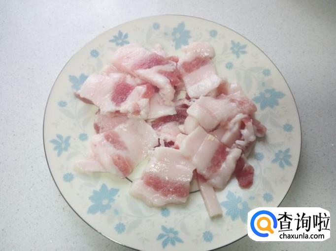 五花肉用水洗一下,切成片。