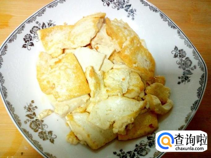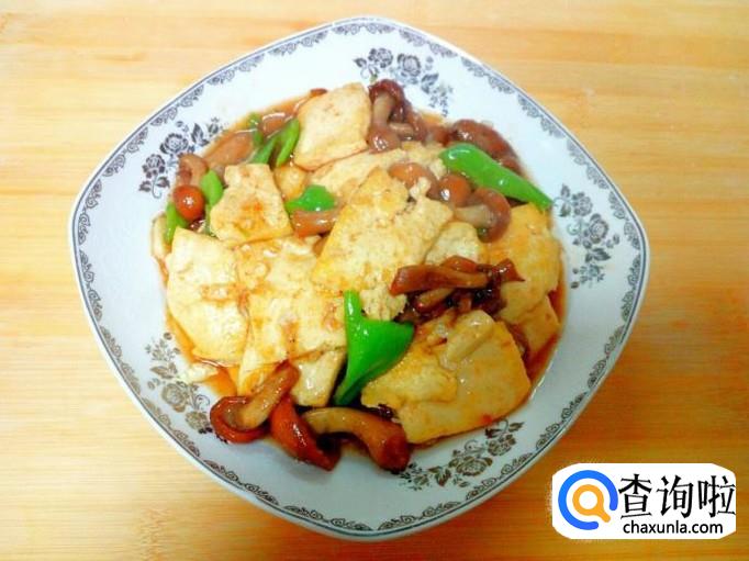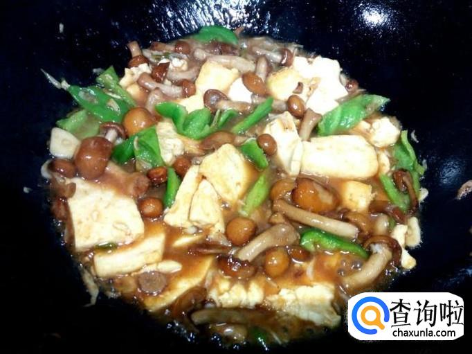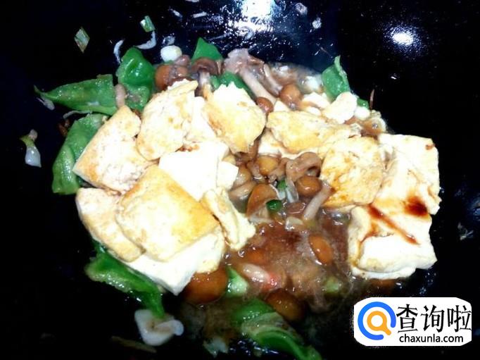 豆腐稍翻炒一下,然后放入调和好的料汁,翻炒均匀,收汤汁后,关火出勺。