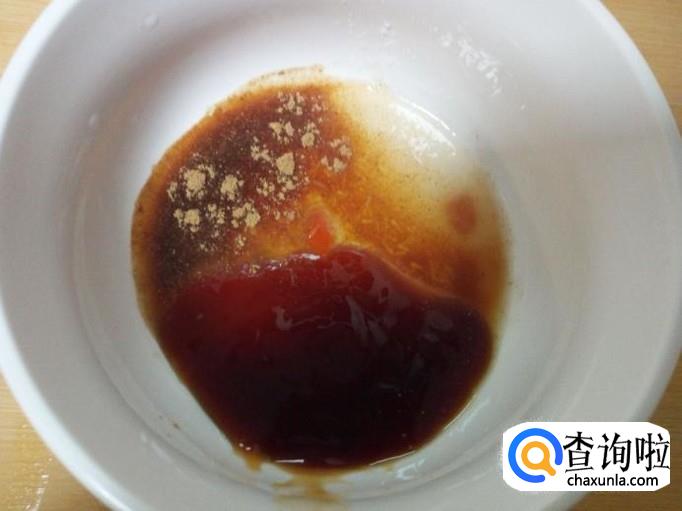 碗里放入盐,味精,五香粉,料酒,酱油,蚝油,兑少量水,调和成料汁。