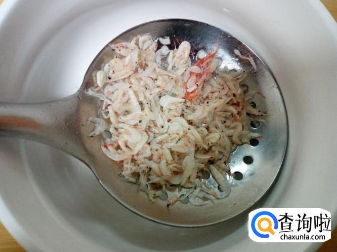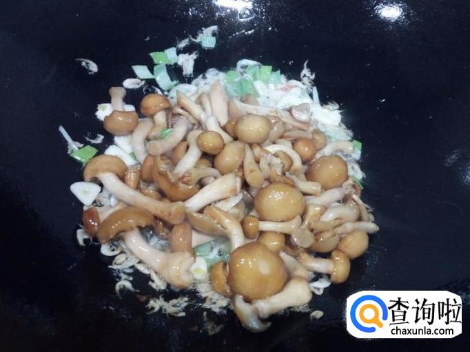 滑子蘑用水清洗干净,控干水分,备用。虾皮用水冲洗一下,控干水分,备用。