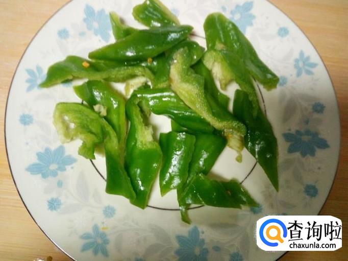 青椒用水清洗干净,控干水分,切成片。切好葱,姜,蒜,备用。