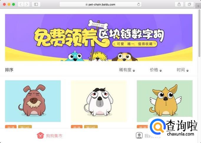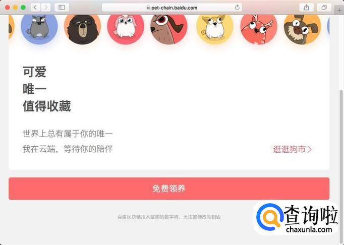 进入官网之后,在上方点击“免费领养区块链数字狗”