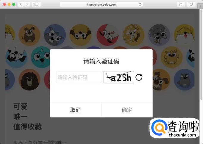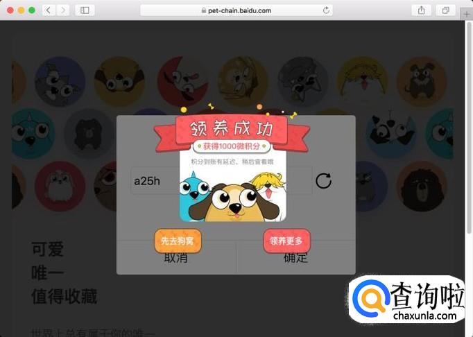 点击免费领养之后,弹框提示输入验证码进行验证,输入之后点击“确定”