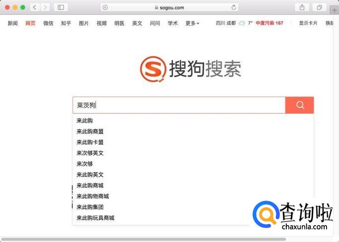 进入搜狗搜索界面,输入“莱茨狗”进行搜索。