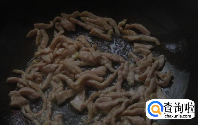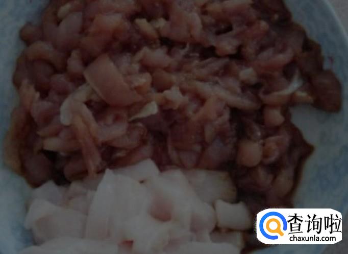 猪肉洗净,切成丝,瘦肉中加一些淀粉,盐 搅匀,腌制着
