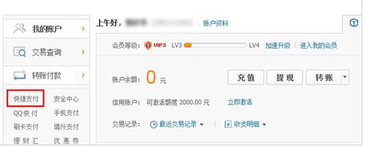 搜索输入财付通,然后进入财付通官网,在财付通官网上登录自己的财付通账号,然后首页网站里面点击左侧的“快捷支付”按钮。