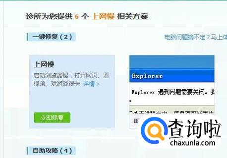 接着点击上网慢下方的立即修复,等待修复完成就可以了。你学会了吗?赶快动手试一试吧。