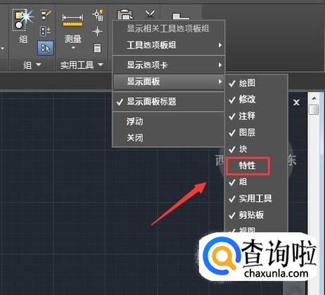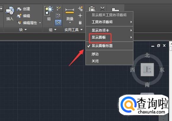 在CAD的菜单里我们单击鼠标右键在弹出的右键菜单那里找到显示面板选项,如图所示: