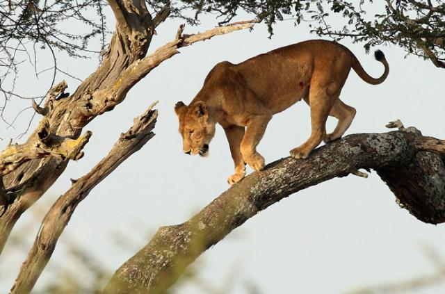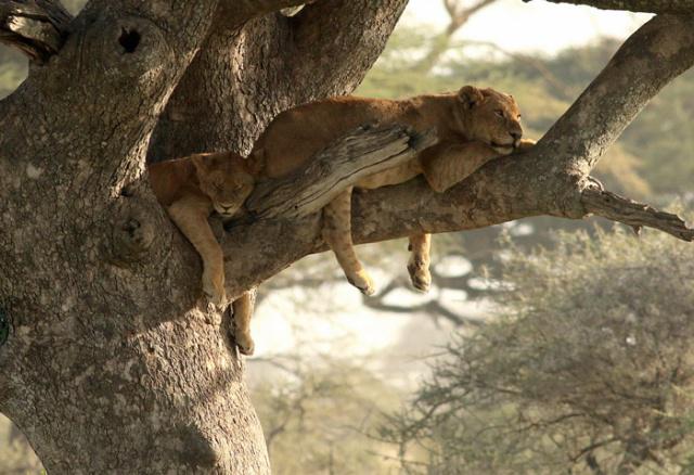 在塞伦盖蒂国家公园,有位野生动物摄影师在短短两天的时间里,就遇到了三只不同的狮子懒洋洋地躺在树上。这些狮子躺在树上的静态场景使很多人忘了狮子并不擅长爬树这一事实。