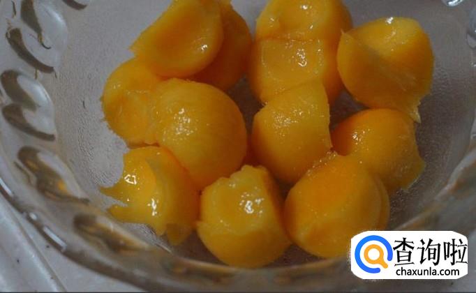 再把混合好的糯米粉放入微波炉中三分钟左右至比较粘糊的状态,再把芒果皮去掉,然后把果肉切成块状放在碗里。