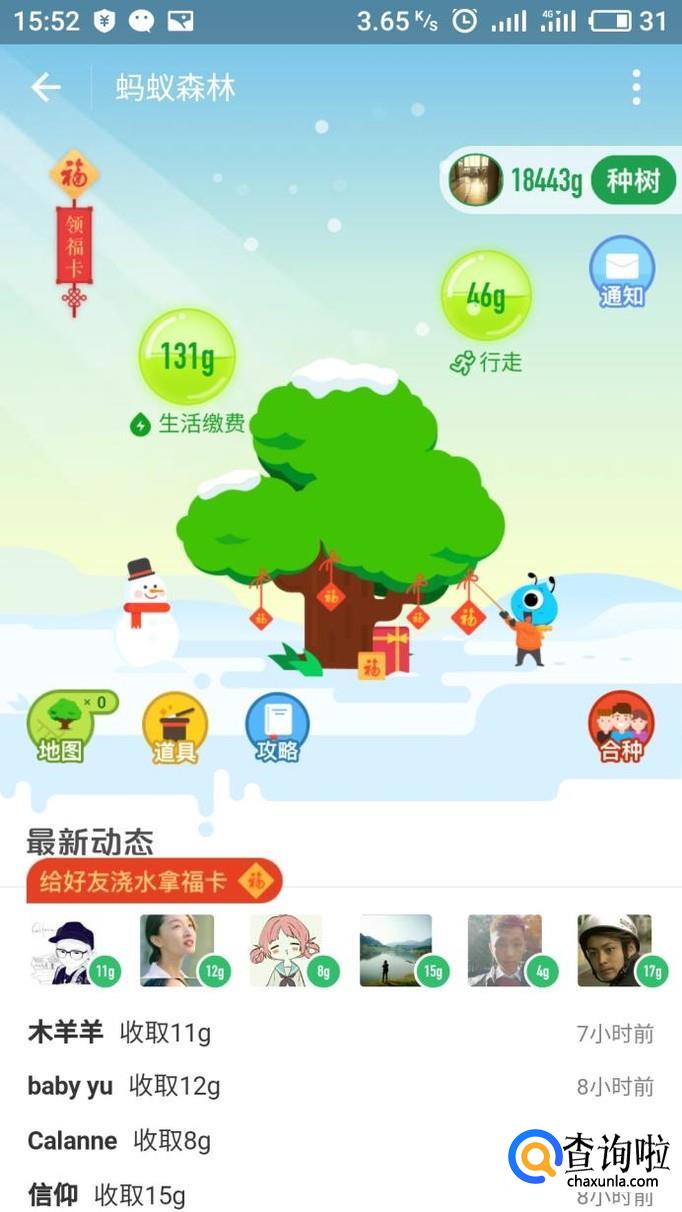 蚂蚁深林给好友浇水可以获得福卡,给不同的好友浇水可以获得更多数量的福卡,获得敬业福的机会更大。