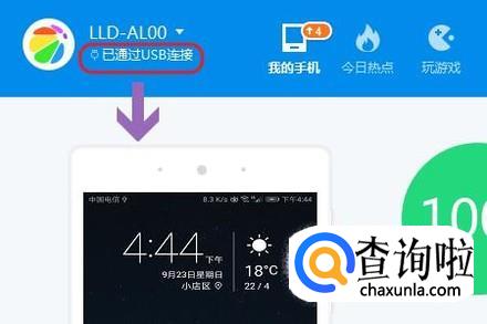 然后通过数据线或者WiFi扫码的方式将手机和电脑连接起来,连接成功以后电脑端360助手左侧会显示手机屏幕,如图所示;