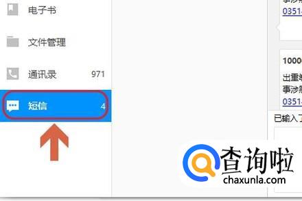 然后联系人的下方即可看到“短信”了,点击该项即可在页面的右侧显示之前我们所有往来过的短信内容列表,见图二;