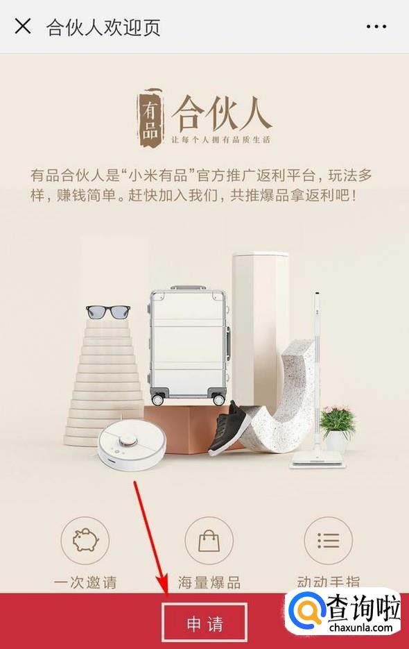跳转到“合伙人欢迎页”,有一点简介,点击下方的“申请”;