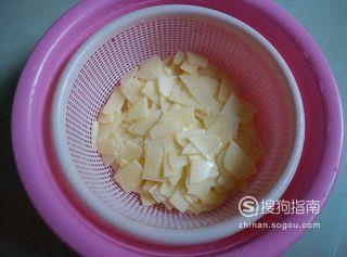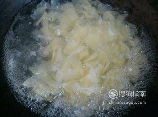锅中烧水,下土豆片,煮几分钟,土豆片变色后捞出。