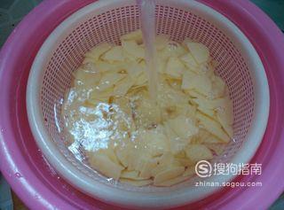 捞出的土豆片用冷水冲洗一下。