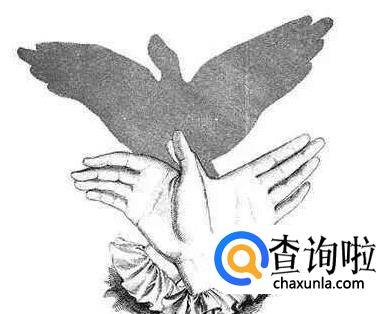两只手大拇指重叠,手掌往两边展开形成老鹰的翅膀,一只手弯曲一点像在用力的姿态,一只手伸直一点。