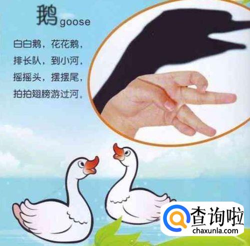 鸭子需要两只手完成,而且完成一只仰天高歌的鸭子,另外一只手需要放在手腕位置。