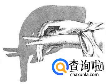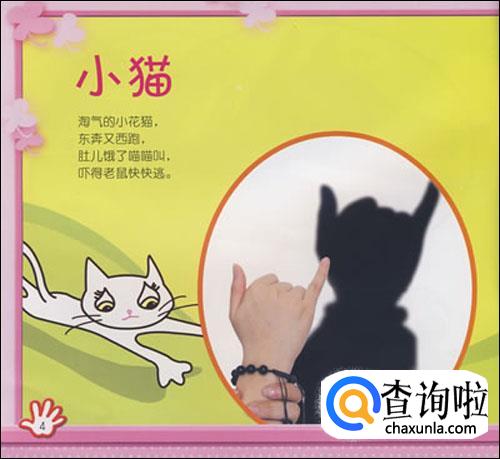 小猫做一个背影即可,将大拇指和小拇指竖起来,其他手指往手心弯曲,另外一只手握住手腕,做出猫的身体。