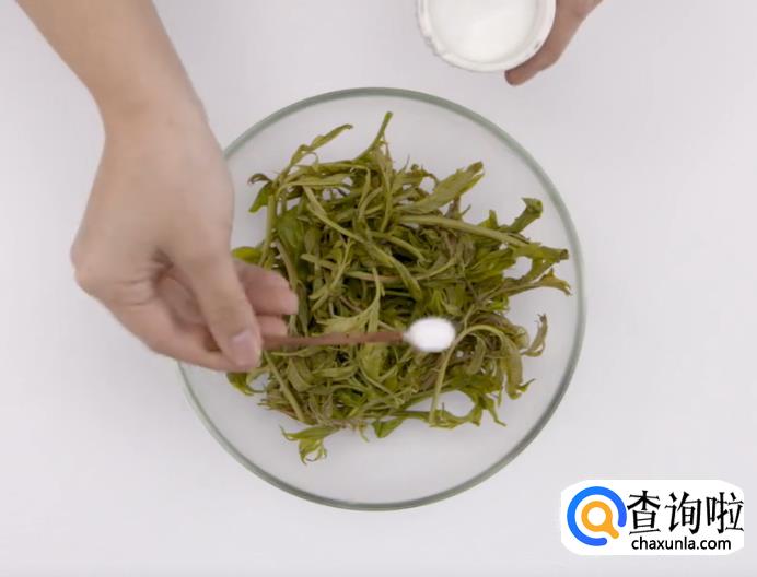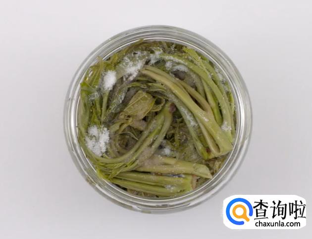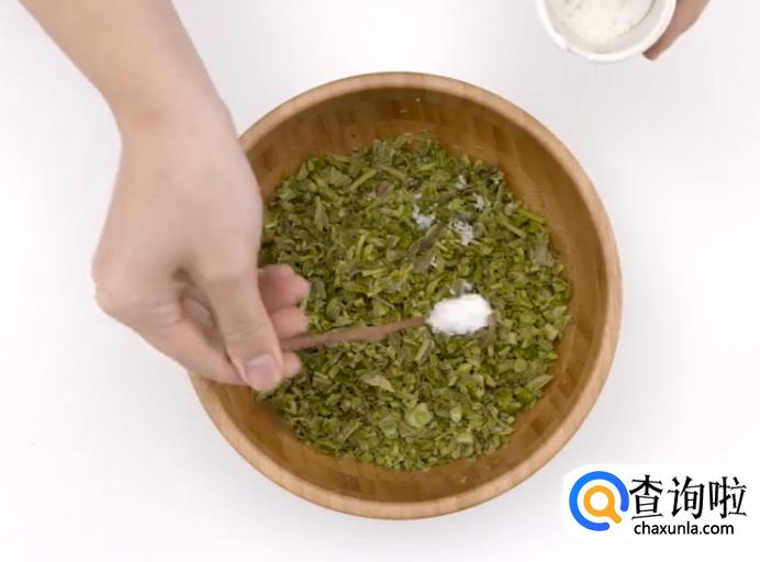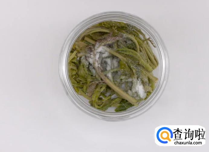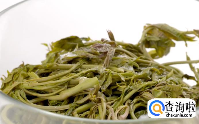 之后用细盐拌匀香椿。