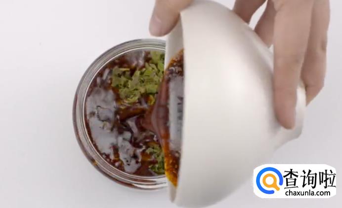 之后浇上90度菜籽油,制成熟油之后放凉。