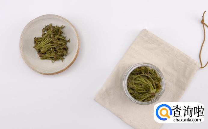 首先将香椿焯水阴干后撒盐拌匀。