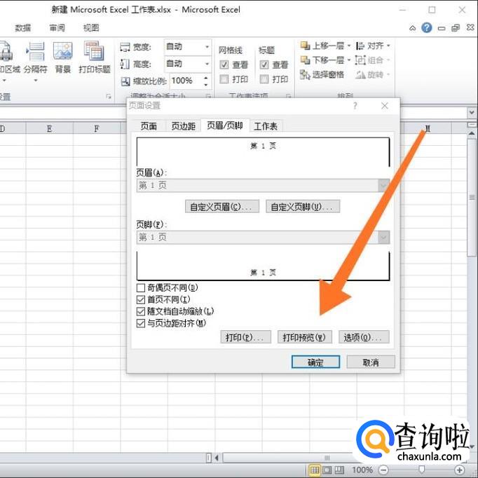 再点击“页眉/页脚”选项卡下方的“打印预览”。