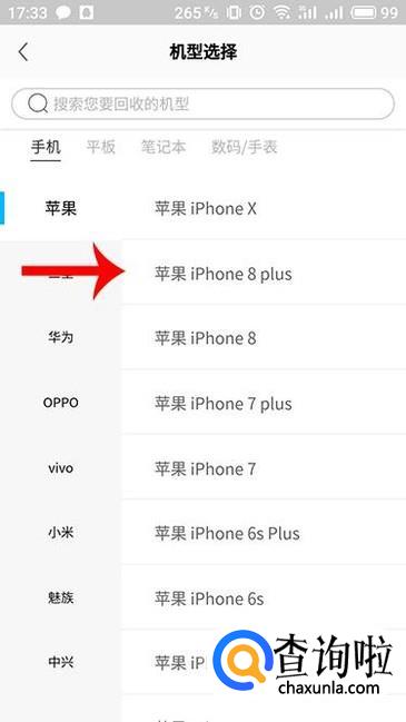 进入机型选择界面,我们先选择需要进行回收的机型。