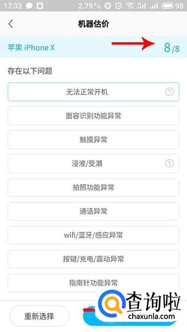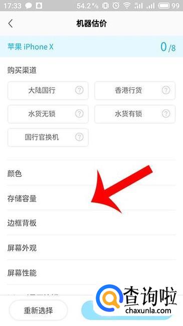 进入机器估价界面,根据系统的相关提示选择相应的参数信息以供系统参考。