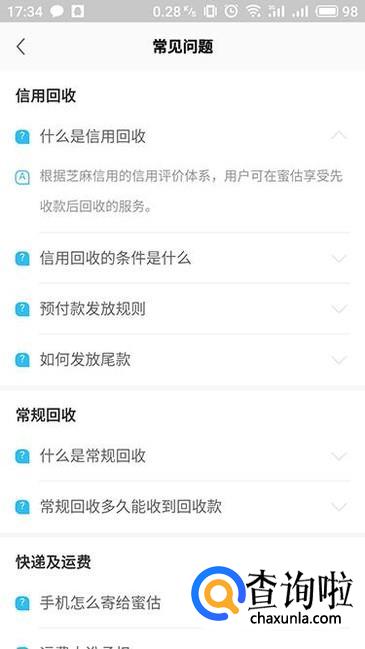 如果对手机回收规则有什么不清楚的话,在“常见问题”中可以选择相应的问题来进行查询。