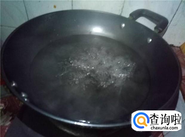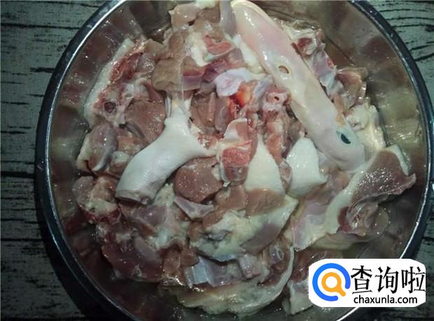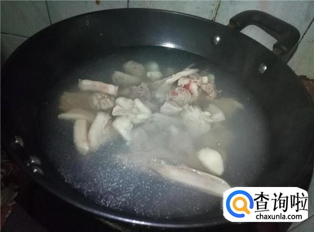 锅里烧开半锅水,放入鸭肉烫三分钟,再捞起来备用。