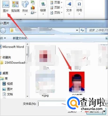 点击图片按钮,弹出插入图片对话框,选中相片,点击插入。