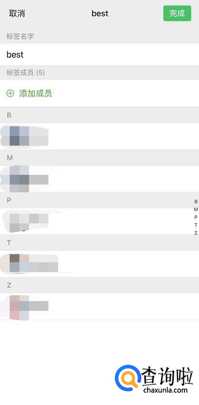 把你要加在这个标签的好友都加进来,然后点击完成。