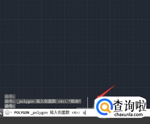 选择多边形选项我们在下面的命令行内输入我们的边数为6,如图所示: