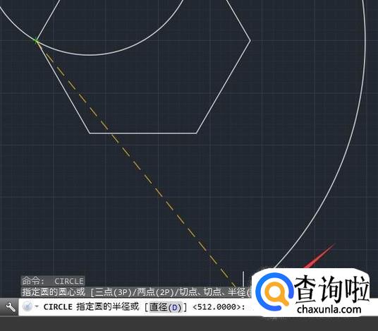 选择外切与圆之后确定元的半径这样我们就绘制出了一个正六边形,如图所示: