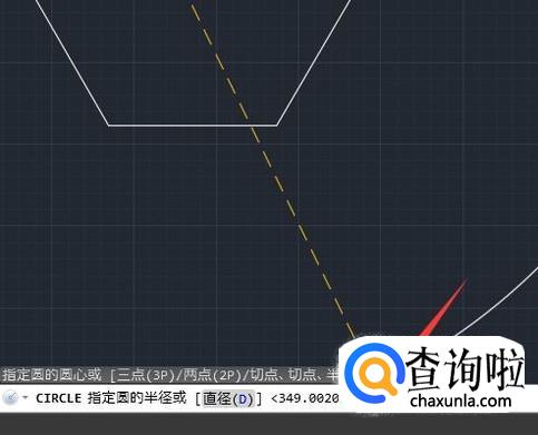 点击圆形选项我们选择正六边形的一个顶点作为圆心,然后以边长的一倍为半径换出一个圆形,如图所示: