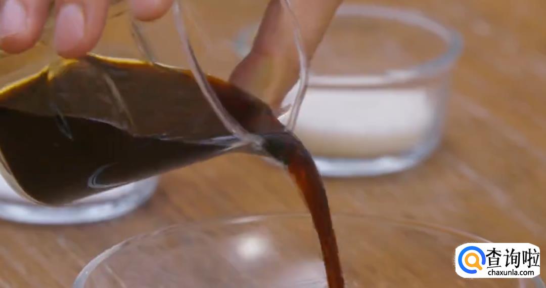 取一个碗,倒入生抽,盐巴,白砂糖。
